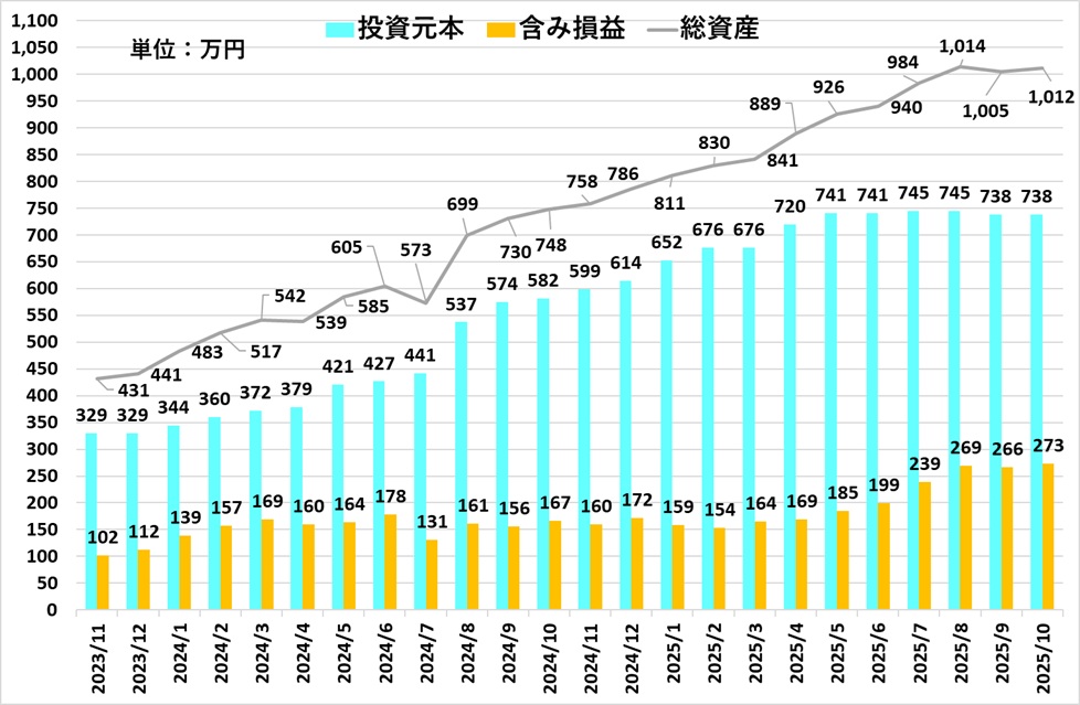 2025年10月時点でのわたしのポートフォリオは以下のとおりですので、