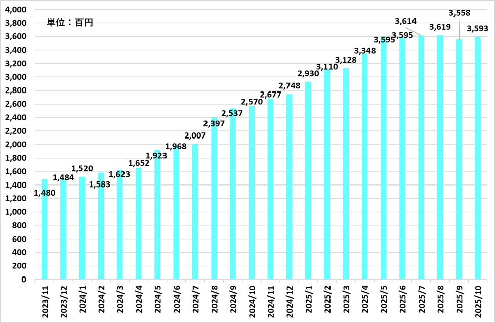 ・2025年10月の年間受取配当金は、359,300円(税引き後 286,308円)