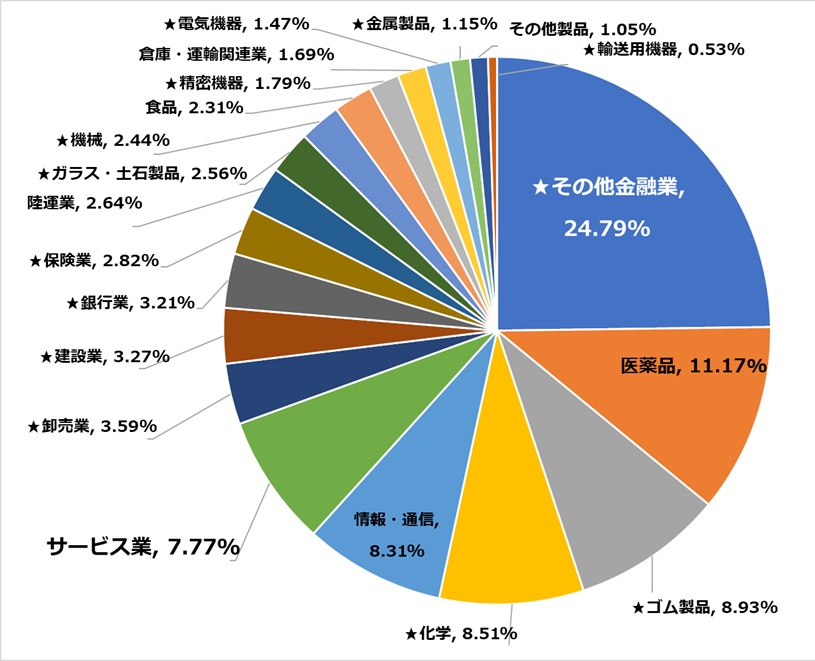 セクター別に投資割合を円グラフにすると、こんな感じ
